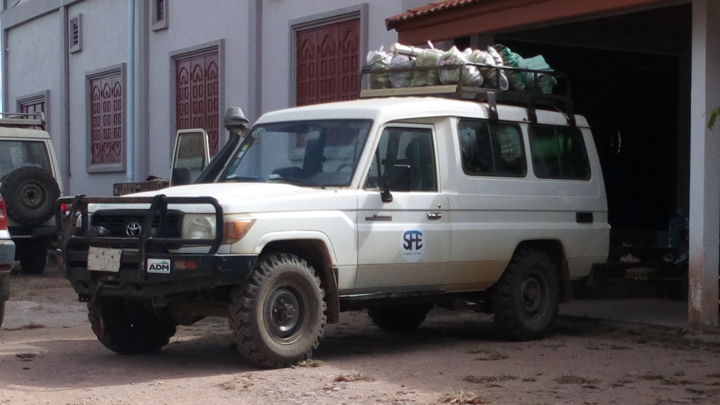 Véhicule du SFE prêt à partir pour quelques jours d’intervention en équipe dans les villages. Les équipes sont composées d’intervenants laotiens qui vont faire de  la sensibilisation aux problèmes d’eau et d’hygiène, mais aussi réunir jeunes et ados pour un programme de prévention dans les domaines où ceux-ci sont vulnérables. Ils interviennent par des animations en soirée, et dorment sur place, ce qui donne de bons contacts avec la population.