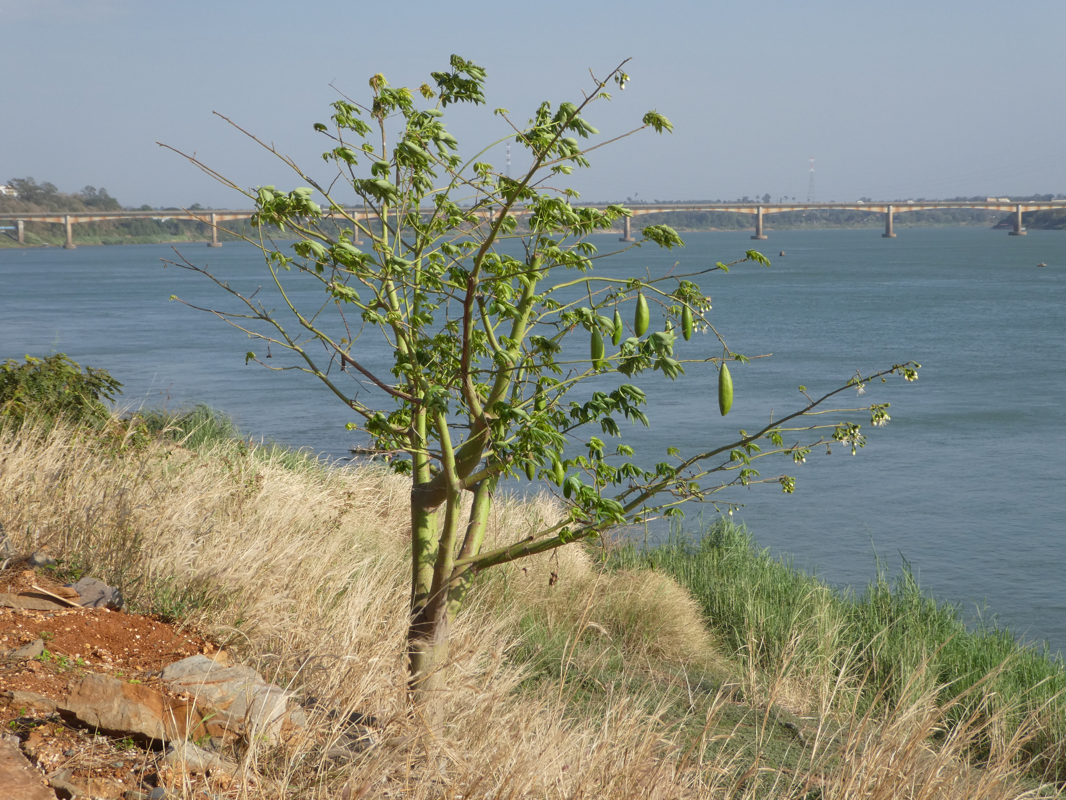 Un petit kapokier a poussé tout seul, sinon pas beaucoup de végétation à part des graminées sèches.