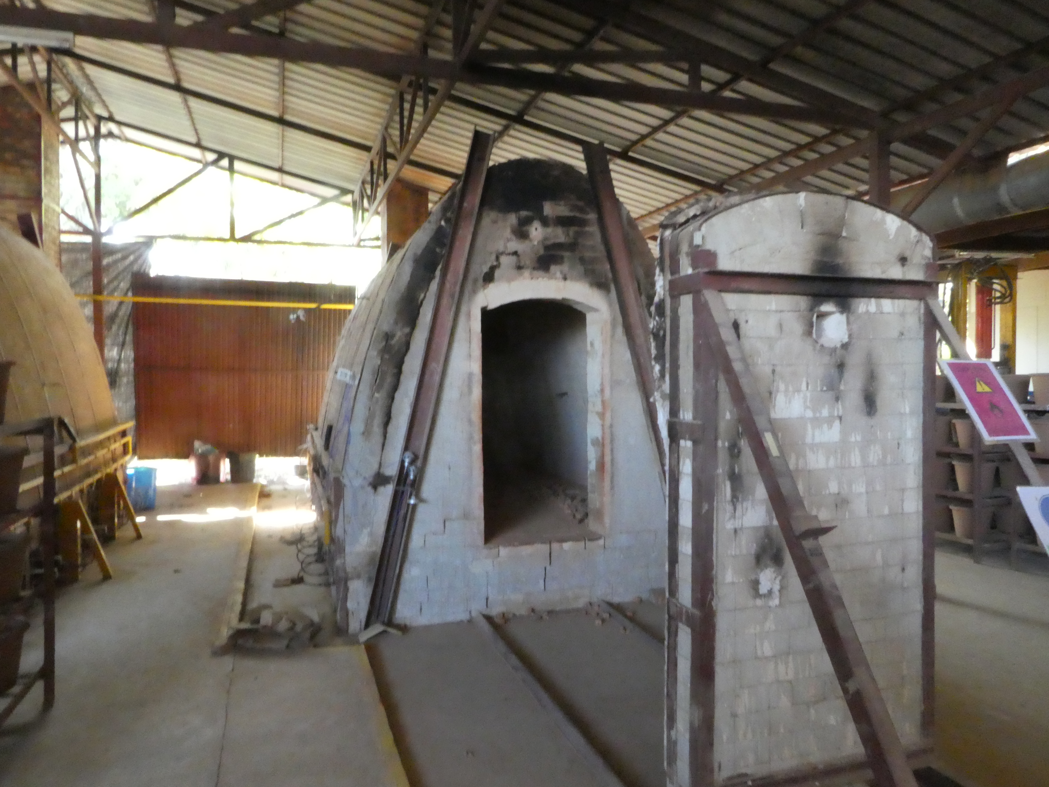 L’étape suivante et un séchage à l’air, qui prend deux semaines en saison sèche, mais bien plus en saison humide. Puis enfournage et cuisson, là aussi le processus est bien précis, avec une montée en température pas trop rapide, sur 12-15 h, puis refroidissement four fermé pendant au m0ins 48h. C’est pendant la cuisson que la balle de riz va faire son travail, c’est à dire calciner et créer des minuscules petits trous, juste de la bonne taille pour que l’eau passe à la bonne vitesse. La dernière étape pour ces pots sera la pose d’un film argentique qui lui donnera ses propriétés bactéricides.