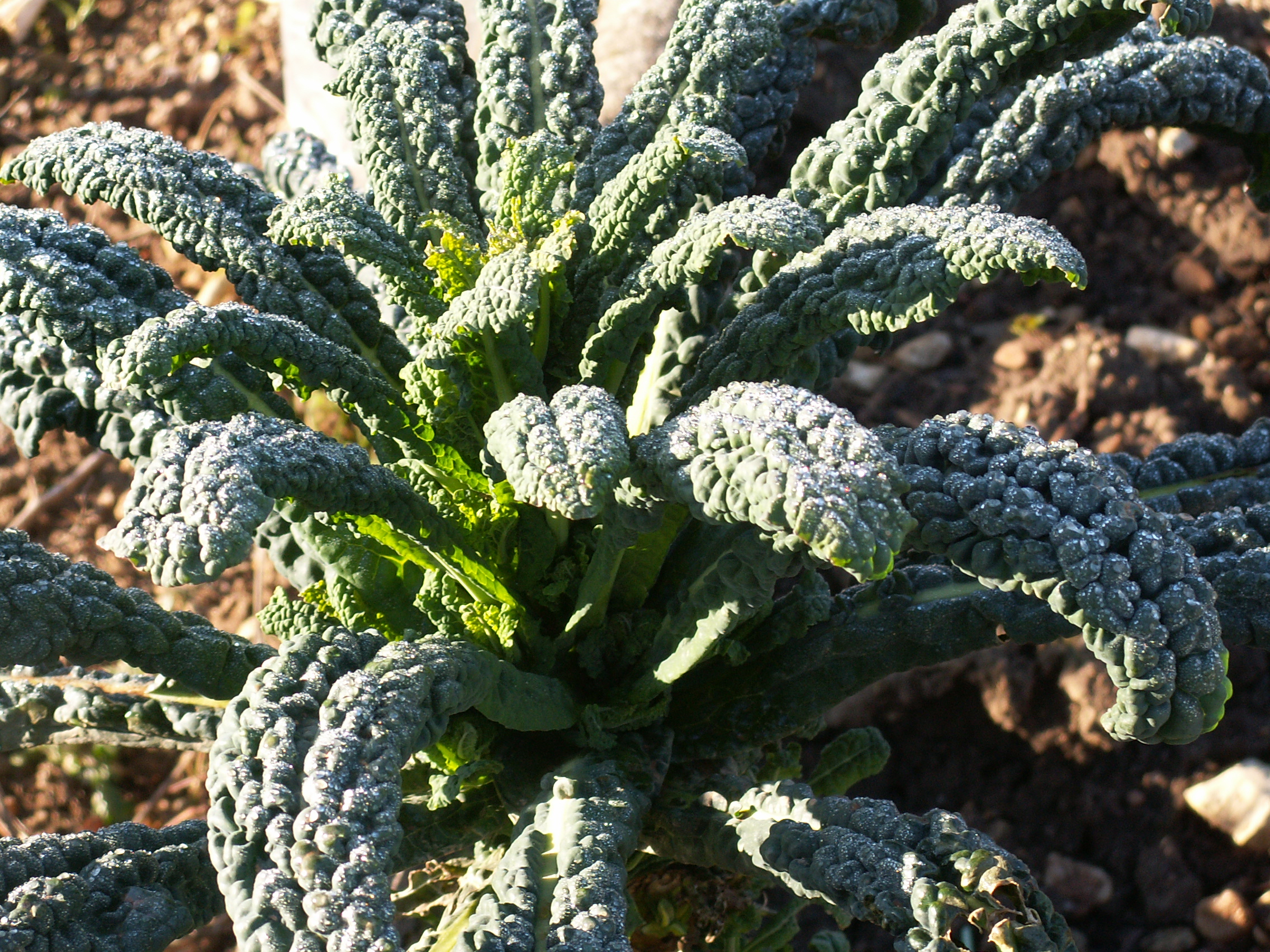 En plus des salades, certains légumes ont passé l’hiver sur place et vont donner encore quelque verdure de printemps. Je n’ai pas photographié les quelques poireaux qui me restent et qui ont agrémenté mes soupes hivernales. Dans le même genre, mais pas la même famille, il y a les choux palmiers toscans, bons dans la soupe ou aussi en légume vert.
