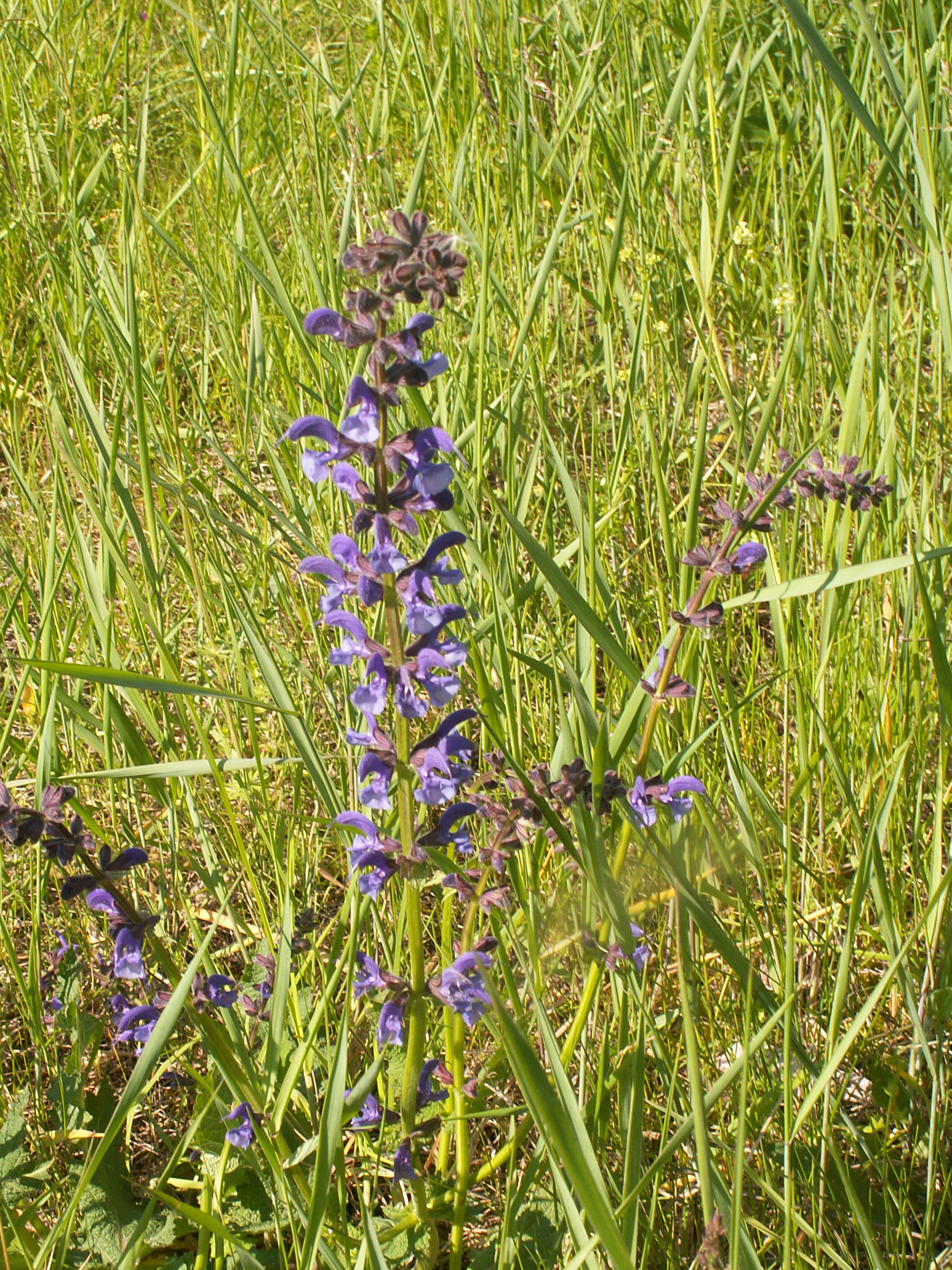Regardez les fleurs des champs!Nous avons donc la violette sauge des prés dont la fleur a un dispositif mécanique pour que les insectes aient du pollen sur le dos et aillent féconder les voisines.