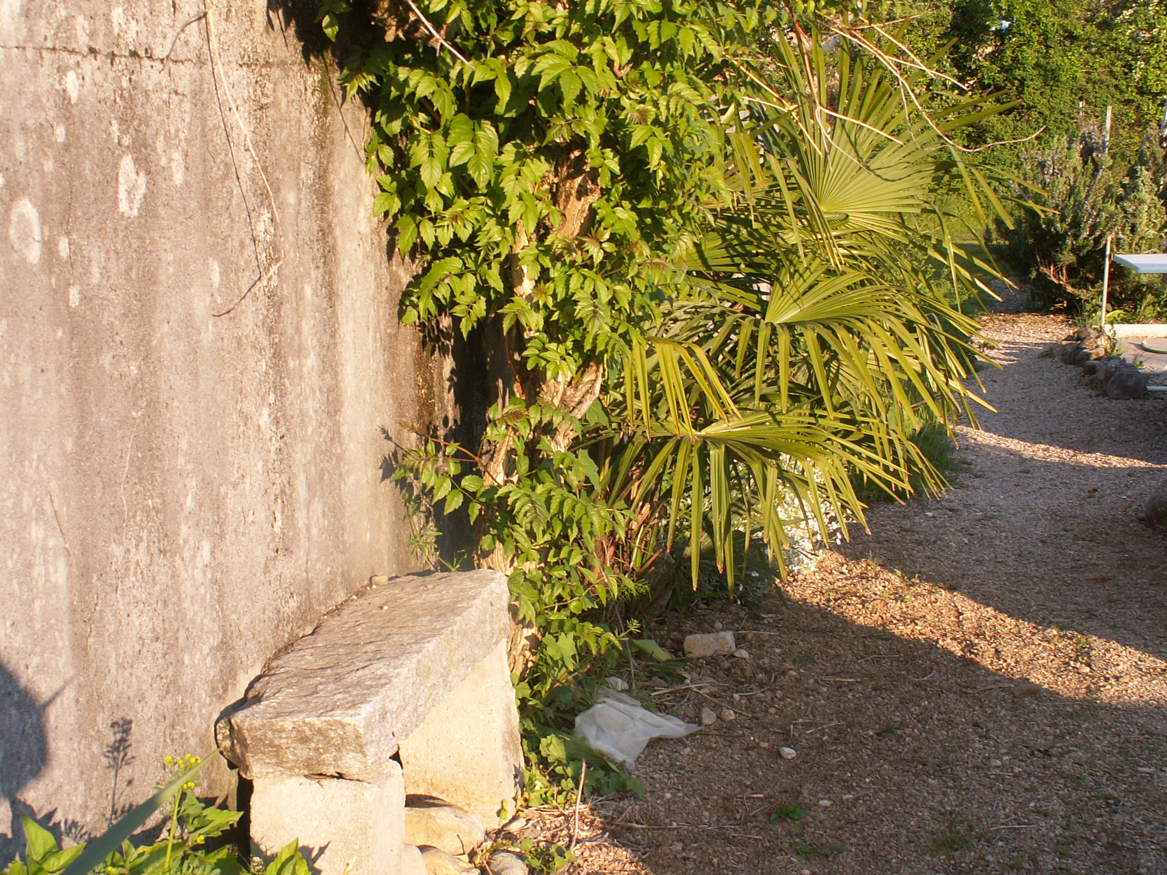 En bordure, un joli petit banc aménagé par un prédécesseur, et une plante qui ressemble étrangement à celle qui s’épanouissait en bordure de notre couvert à véhicules à Vientiane. Un an après notre retour, je cultive à nouveau un bout de terre, pour moi cela marque mon ré-enracinement ici.