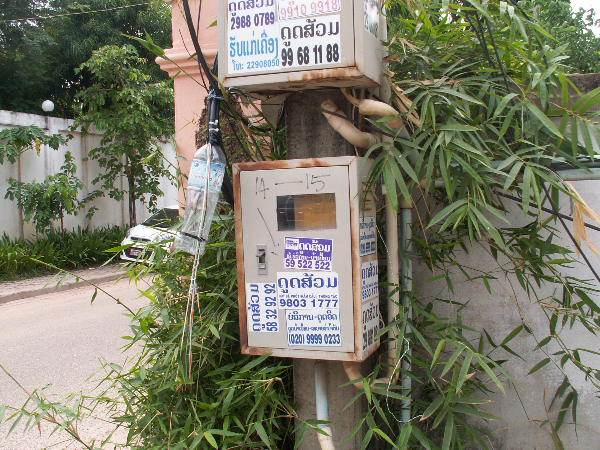 Pour une fois, la boîte qui contient les compteurs des maisons de la petite allée sont fermées. la plupart du temps elles sont grandes ouvertes, la porte battant à tout vent.