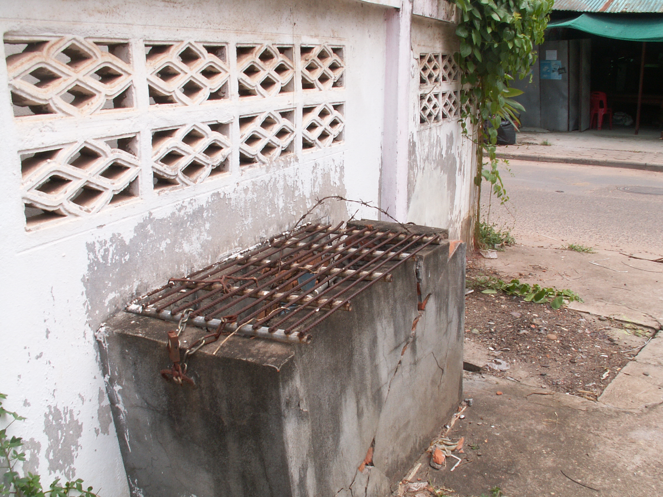 Le lendemain matin, le tank était plein à nouveau. Entretemps, nous avions aussi fait un petit tour du côté de notre compteur d’eau qui à première vue est inaccessible, bien protégé dans une cage en béton recouverte d’une grille dûment cadenassée. Il n’en n’est rien pourtant, on peut facilement soulever la grille et avoir accès aux robinets.