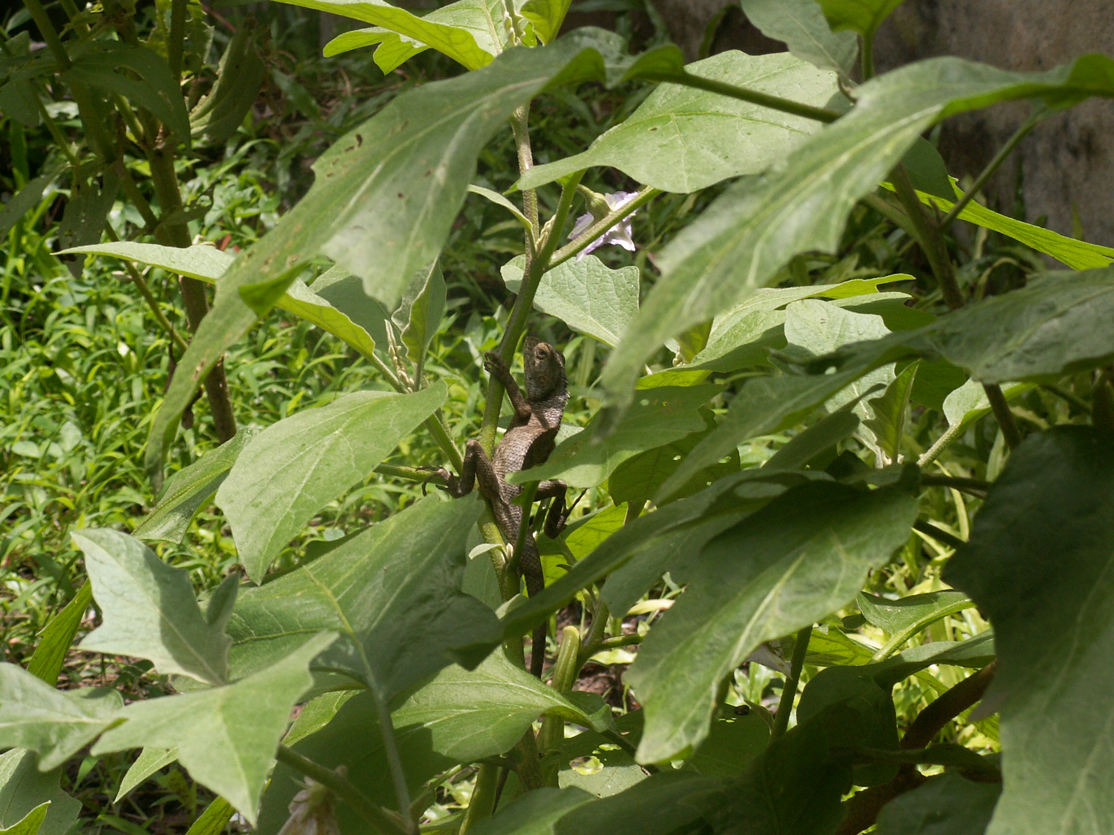 Celui-ci se reposait dans la plante d’aubergine, et a choisi l’immobilité plutôt que la fuite quand je l’ai découvert, ce qui m’a laissé le temps de chercher l’appareil photo et de tirer son portrait.