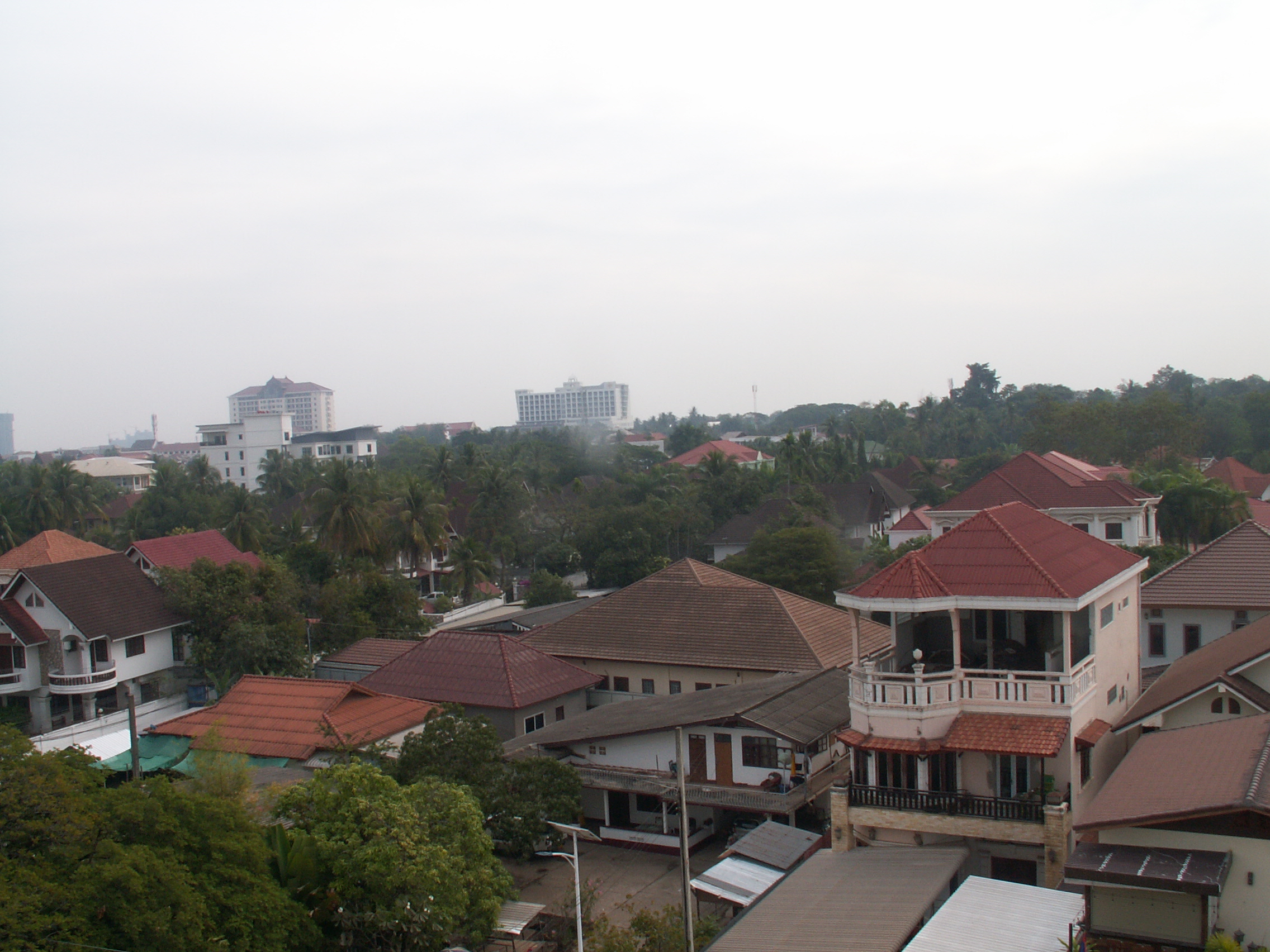 D’abord, vue depuis le toit terrasse de notre immeuble de 4 étages. Beaucoup d’assez grosses et belles maisons dans le coin, et aussi bien des immeubles d’appartements à louer, ou des hôtels.
